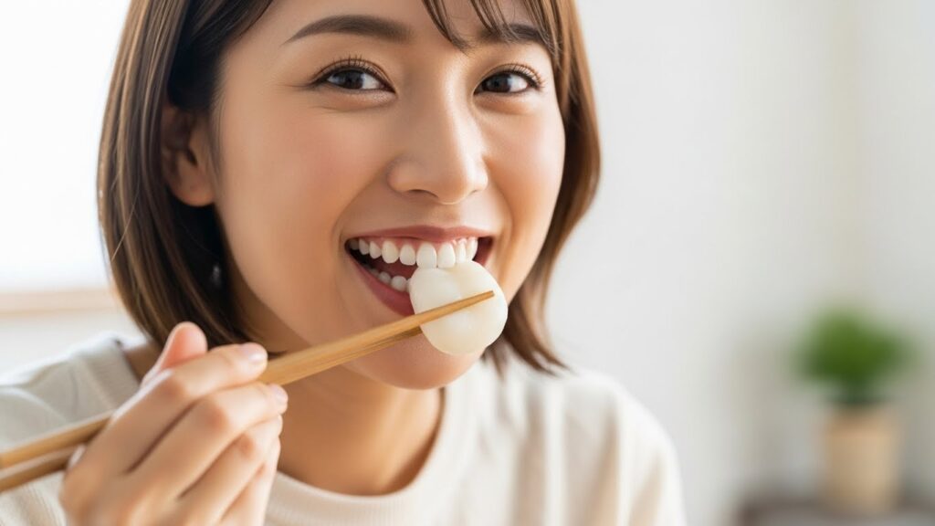 ただし、硬いお餅を無理に噛むと、歯や詰め物が欠ける原因にもなります。硬すぎる場合は、必ず煮たり焼いたりして柔らかくし、奥歯全体でバランスよくゆっくりと噛むことを意識しましょう。
